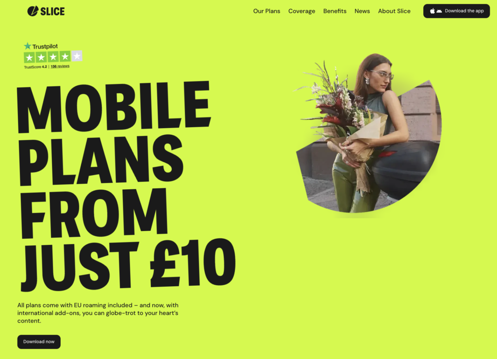 Slice is the UK’s first eSIM-only mobile network, offering no-contract rolling plans, instant setup and loyalty cashback – entirely app-managed.